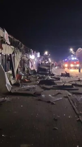 Пострадали дома простых жителей и несколько магазинов. Сведения о пострадавших пока нет.