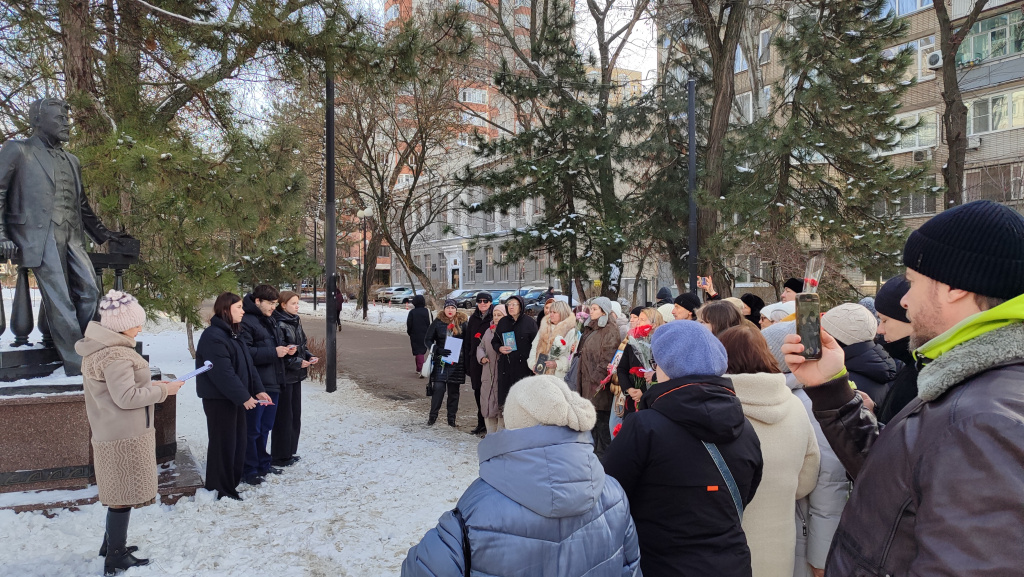 У памятника Антону Павловичу Чехову состоялась торжественная церемония возложения цветов, приуроченная к 166-й годовщине со дня рождения великого русского писателя. Мероприятие, организованное библиотеками Ростова, собрало тех, для кого чеховское слово остается источником мудрости и духовным ориентиром.