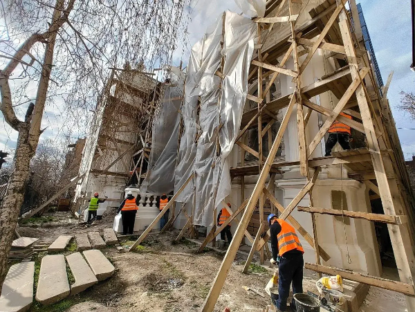 «Характер выполняемых работ может создавать впечатление низкой активности, так как в зимний и ранневесенний периоды выполнение ряда технологических операций (реставрация лепнины, окраска поверхностей) невозможно из-за низких температур и высокой влажности. На отдельных участках фасада установлены защитные покрытия и леса – это необходимо для защиты исторических элементов от атмосферных воздействий, а также обеспечивает безопасность прохожих и создает условия для поэтапного проведения реставрации без ущерба для объекта. По мере наступления благоприятных погодных условий темпы работ и наглядность результатов будут нарастать», – пояснили в министерстве.