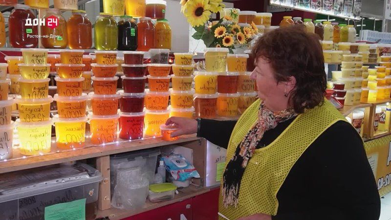 Ростовская область, 7 ноября 2025. Телеканал «ДОН 24». На рынках Ростовской области растет спрос на мед, в сезон простуд это главное народное средство лечения и профилактики. Но положительного эффекта можно ждать лишь от натурального.