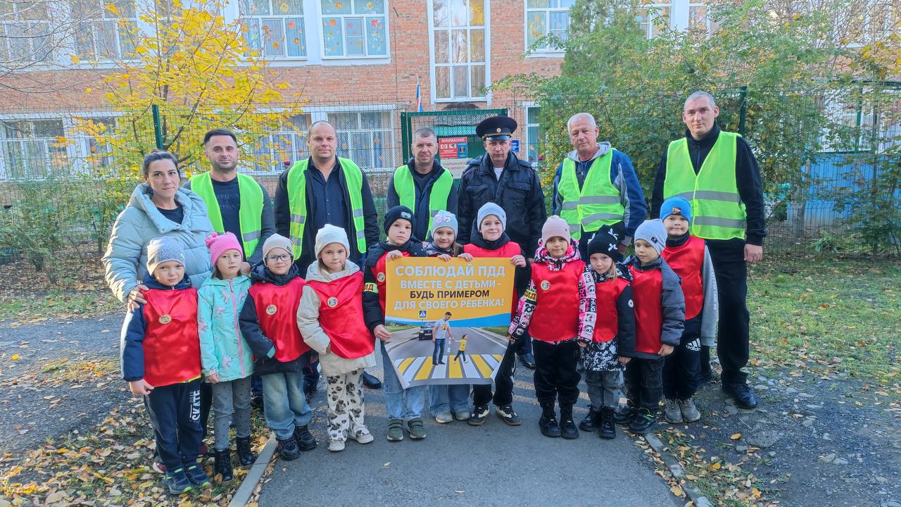 Сотрудники Госавтоинспекции совместно с юными помощниками из ЮПИД и «Родительским патрулем» провели акцию на пешеходном переходе, расположенном рядом с образовательным учреждением. Папы маленьких участников проявили активное участие, что добавило мероприятию особую атмосферу.