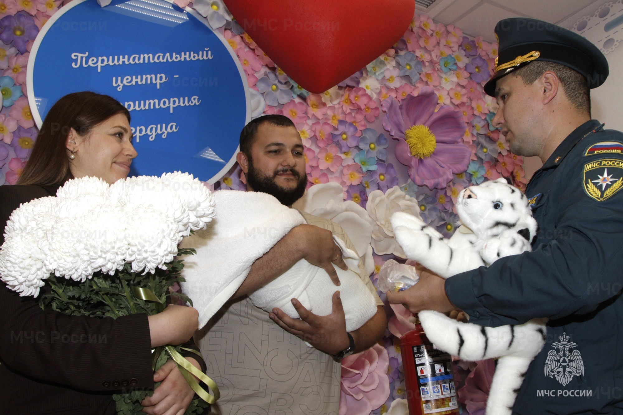 И сотрудники МЧС не остались в стороне - пришли на выписку в Ростовский перинатальный центр с полезными подарками. Семьям с новорожденными спасатели подарили игрушки, пожарные извещатели и огнетушители.