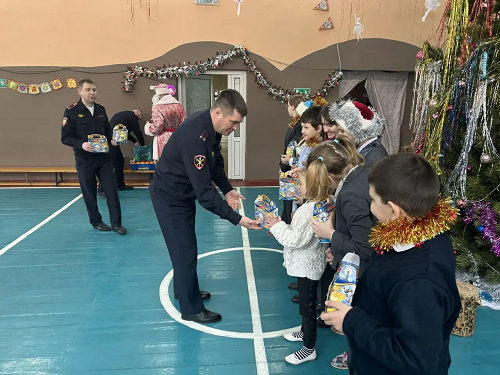 Начальник МО МВД России «Матвеево-Курганский» Николай Гоголь совместно с Руководителем ГРЛС Александром Коваленко и начальником ОГИБДД Николаем Бабкиным посетили школу-интернат Матвеево-Курганского района. Праздник открылся торжественным появлением «Полицейского Деда Мороза». Юные воспитанники встретили гостей аплодисментами и сразу включились в праздничную программу: читали новогодние стихи и пели песни. После чего руководители совместно с «Полицейским Дедом Морозом» вручили детям сладкие подарки.