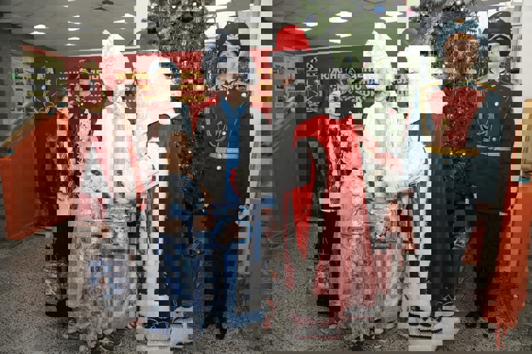После представления все ребята получили сладкие подарки и сделали памятные снимки в специальной фотозоне – на фоне елки и рядом с рыцарем в доспехах.