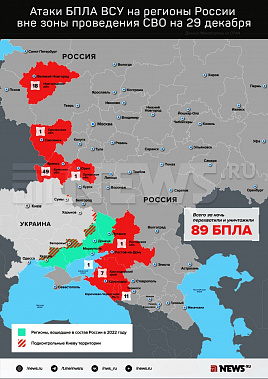 В ходе более интенсивной ночной волны налета над регионами России было сбито 89 украинских беспилотников Из них 49 перехватили и уничтожили над территорией Брянской области, 18 ликвидировали в новгородском небе. Еще 11 дронов было сбито в Адыгее, семь — в Краснодарском крае. По одному БпЛА сбили зенитчики в Орловской и Смоленской областях. Один дрон был ликвидирован над Азовским морем.