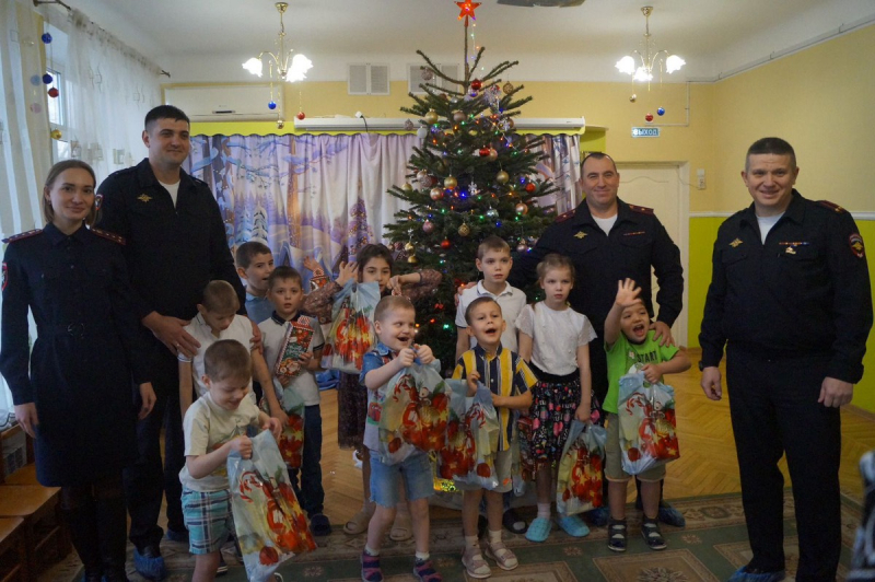 Начальник Отдела Госавтоинспекции городского Управления МВД подполковник полиции Олег Четвериков и командир ОБ ДПС ГАИ майор полиции Вячеслав Полумыско поздравили детей и коллектив учреждения с наступающим праздником. В своих обращениях они отметили, что Новый год ? это время, которое дарит тепло, радость и веру в лучшее, пожелали ребятам крепкого здоровья, больших успехов, отличного настроения и неиссякаемой энергии для покорения новых высот в наступающем году.
