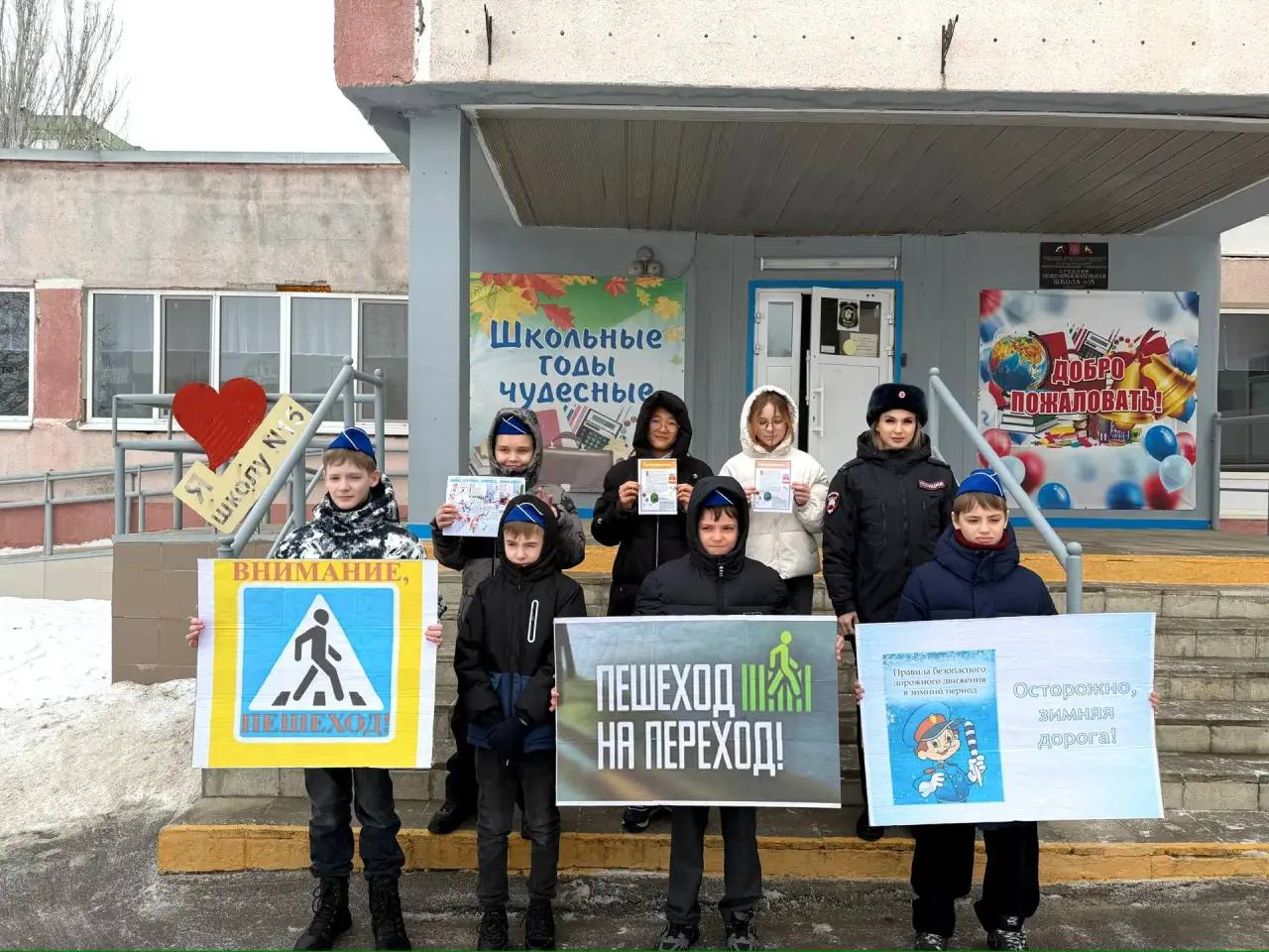 Старший инспектор по пропаганде безопасности дорожного движения отдела Госавтоинспекции МУ МВД России «Волгодонское» Елизавета Свинцова вместе с отрядом ЮИД МБОУ № 15 провели профилактическую акцию «Пешеход, на переход!».