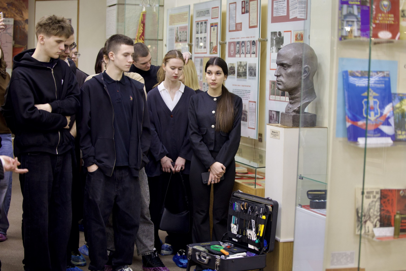 После чего директор Музея – заслуженный работник культуры Надежда Михайловна Иванова провела для студентов экскурсию по залам, показывая уникальные экспонаты. Рассказала об основных этапах истории милиции и полиции, о значимых событиях и сотрудниках, которые внесли вклад в обеспечение правопорядка.