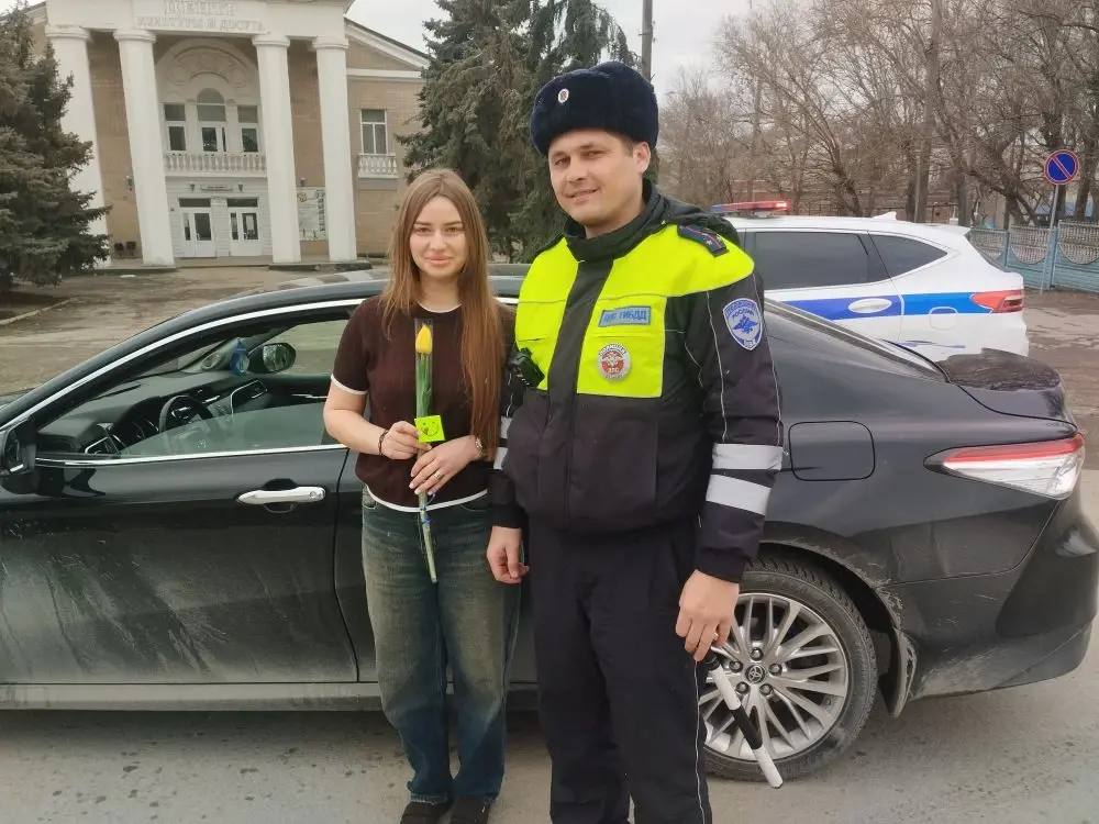 Инспекторами Отделения Госавтоинспекции ОМВД России по Миллеровскому району была проведена акция Цветы для автоледи. Инспектор по пропаганде БДД старший лейтенант полиции Кавелич Сергей Владимирович и старший Инспектор ДПС старший лейтенант полиции Сягайло Денис Сергеевич в честь предстоящего праздника 8 марта вручили цветы женщинам водителям.