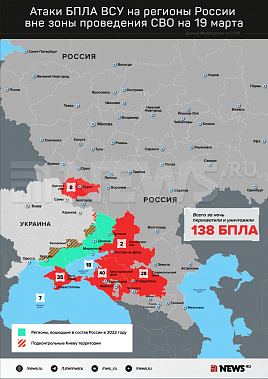 Инфографика News.ru. По информации главы региона, люди в ходе отражения сегодняшней атаки на Таганрог не пострадали. Из последствий на земле губернатор назвал повреждение остекления в одной из квартир многоэтажного жилого дома, куда попали обломки сбитого беспилотника. Окно здесь оказалось практически выбито взрывной волной. Пожара падение обломков дрона, по счастью, не вызвало. Остальные детали ночной атаки продолжают выясняться. Жильцам пострадавшей квартиры губернатор пообещал оказать всю необходимую помощь. Режим беспилотной опасности, объявленный перед ночным налетом, сохранялся в этот раз около семи часов.