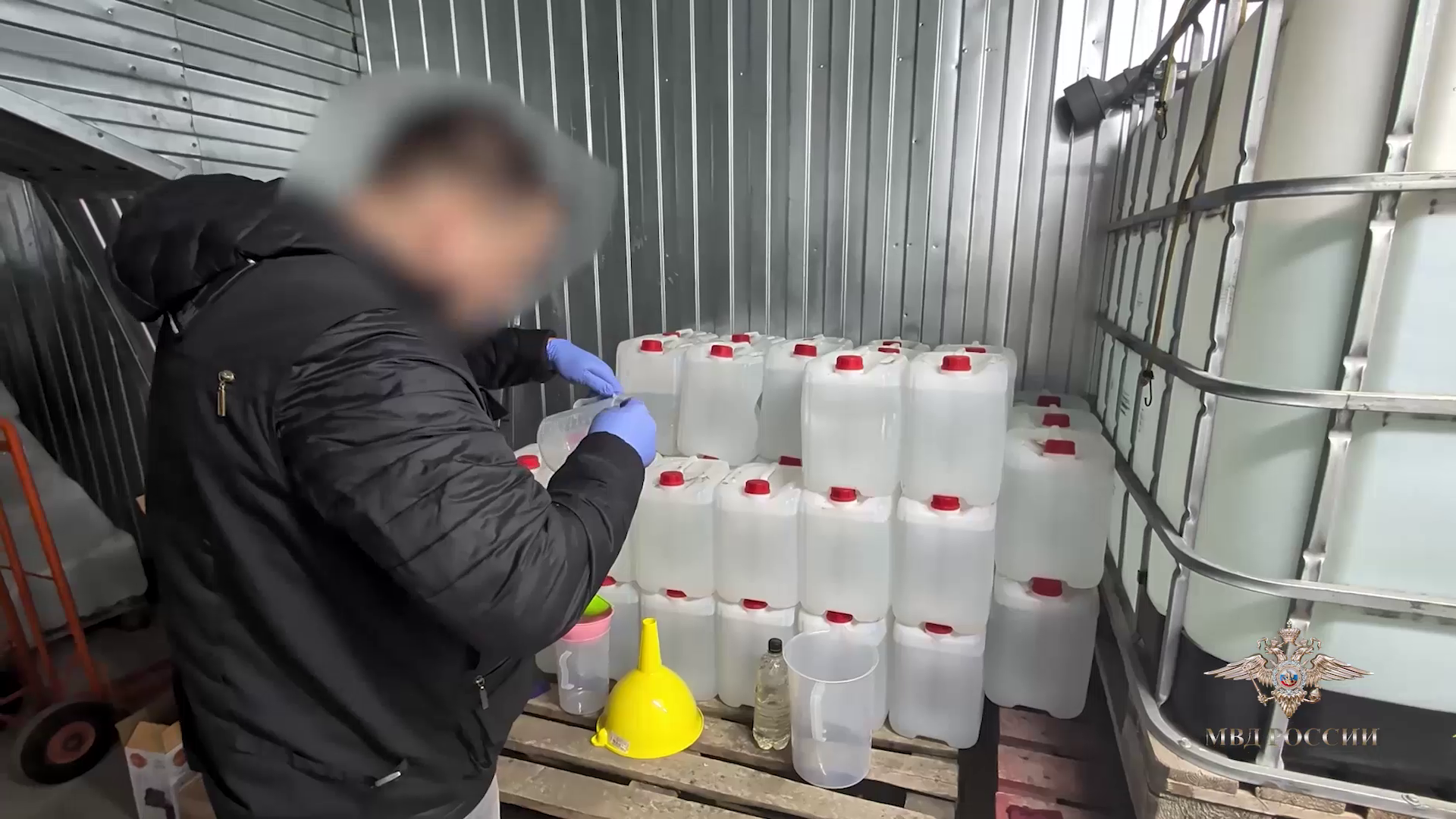 «В результате оперативно-розыскных мероприятий полицейские при силовой поддержке сотрудников Росгвардии задержали подозреваемых. В ходе обысков по местам их жительства и на территории складских помещений обнаружено оборудование для розлива, более 2,5 тысячи бутылок готовой продукции, пять тонн спиртосодержащей жидкости, более 6,5 тысячи литров этилового спирта.