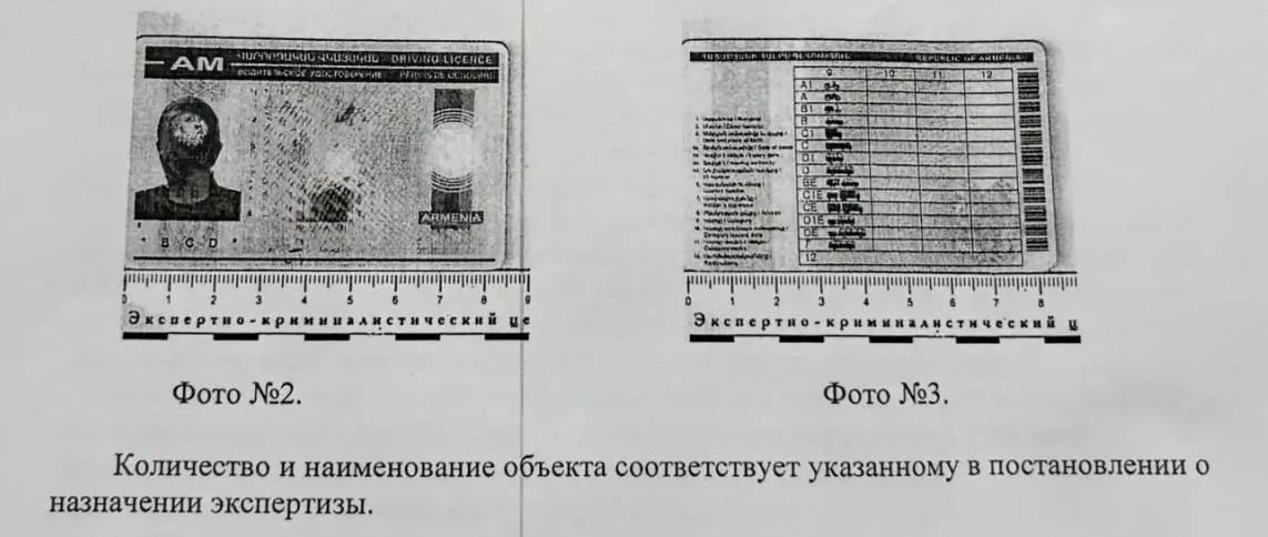 Согласно заключению эксперта, способы воспроизведения изображений и элементы защиты бланка водительского удостоверения не соответствуют установленному защитному комплексу.