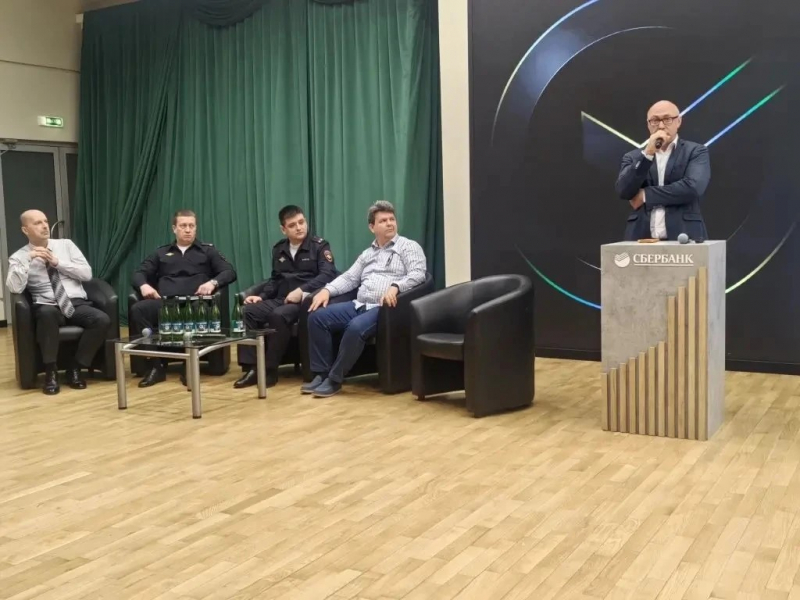Заместитель начальника Управления по организации борьбы с противоправным использованием информационно-коммуникационных технологий ГУ МВД России по Ростовской области подполковник полиции Руслан Алиев и начальник отдела Управления уголовного розыска ГУ МВД России по Ростовской области подполковник полиции Антон Гречанюк посетили профилактическое мероприятие в офисе Юго-Западного банка Сбербанка, посвященное сотрудничеству банков и полиции.