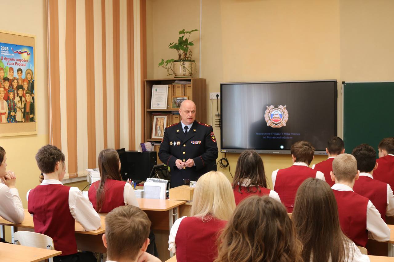 В МБОУ «Лицей многопрофильный № 69 им. Пескова Ю.А.» сегодня прошёл Единый день правового информирования ГУ МВД России по Ростовской области. Мероприятие состоялось в «полицейском классе» среди учеников 11го класса и было посвящено знакомству учащихся со службой в органах внутренних дел и вопросам безопасности на дорогах.