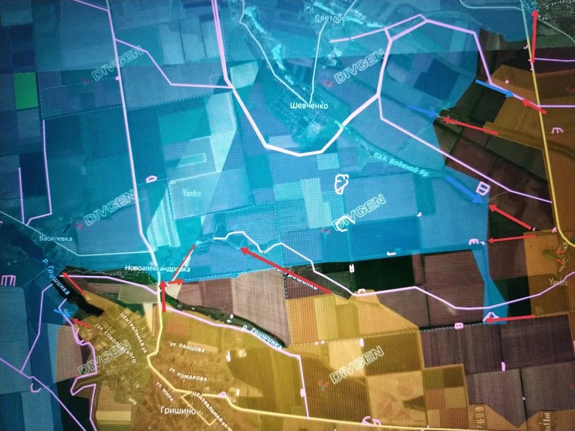 Севернее Гришино ВС РФ продвинулись вдоль балки Третий Яр к пруду северо-восточнее Новоалександровки.