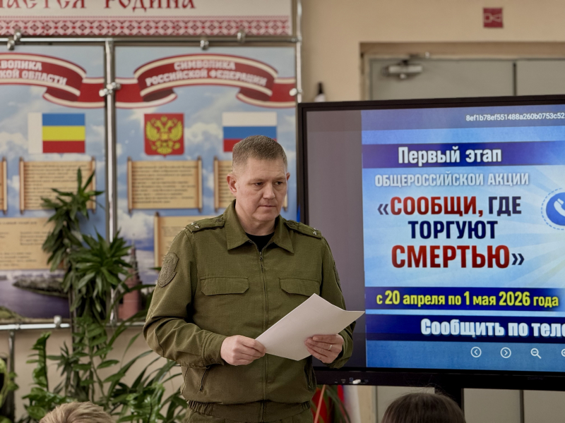 Основной целью мероприятия стало повышение правовой грамотности несовершеннолетних, формирование у подростков негативного отношения к употреблению наркотических средств, а также популяризация ценностей здорового и активного образа жизни. Беседу с учащимися провел член Общественного совета при ГУ МВД России по Ростовской области,, заместитель атамана войскового казачьего общества «Всевеликое войско Донское» по работе с молодежью, войсковой старшина Леонид Бабич.