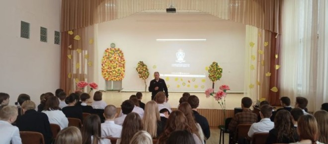 Заместитель начальника Отдела МВД России по городу Донецку – руководитель группы по работе с личным составом подполковник полиции Алексей Шейкин посетил школьников гимназии № 12 и провел урок на тему «Разговоры о важном» с ребятами...