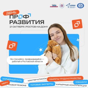 Уже 21 октября в Ростове-на-Дону вас ждут партнеры-работодатели,бесплатные консультации от эйчаров, воркшопы, дискуссии с экспертами и молодыми соискателями, тренинги, мастер-классы, карьерные медитации, призы...
