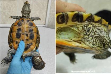 В Ростове-на-Дону ветеринар-герпетолог Анастасия Савченко спасла домашнюю красноухую черепаху, которая едва не погибла из-за прогулок по полу.