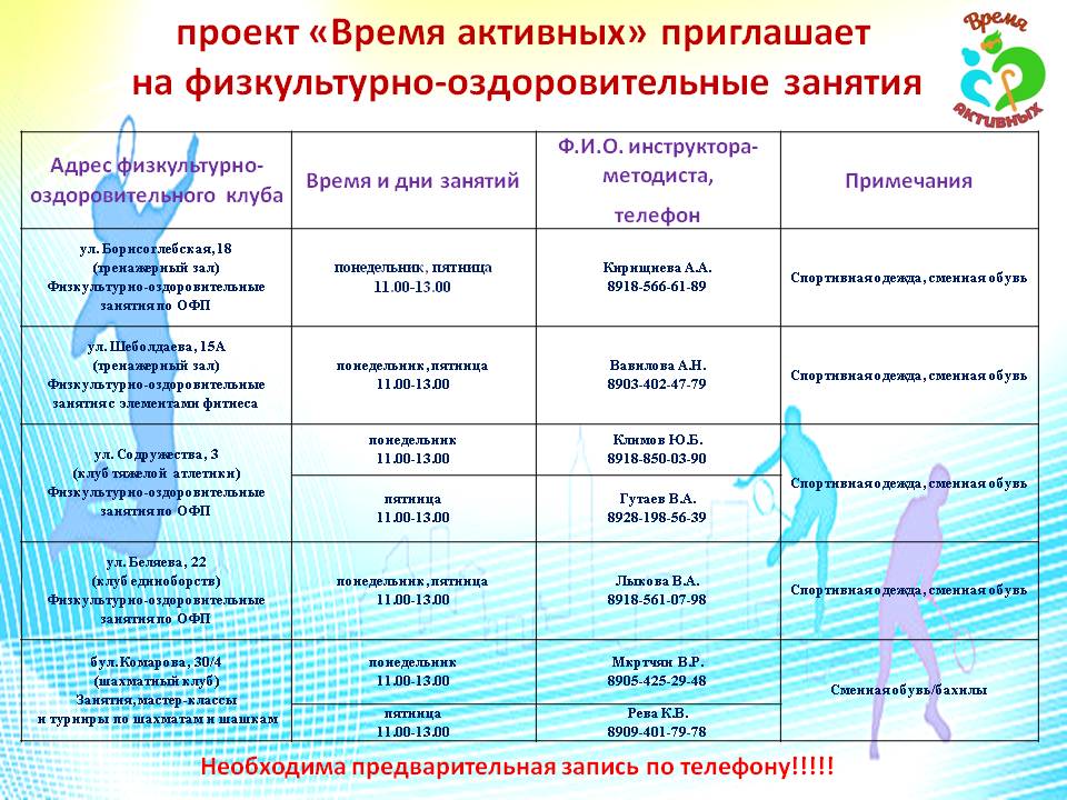 «По моему поручению созданы условия, чтобы пожилые ростовчане могли посещать бесплатные тренировки с профессиональными инструкторами в теплых залах городских физкультурно-оздоровительных комплексов круглый год», — сообщает глава города Александр Скрябин.Расписание занятий и список мест на фото.