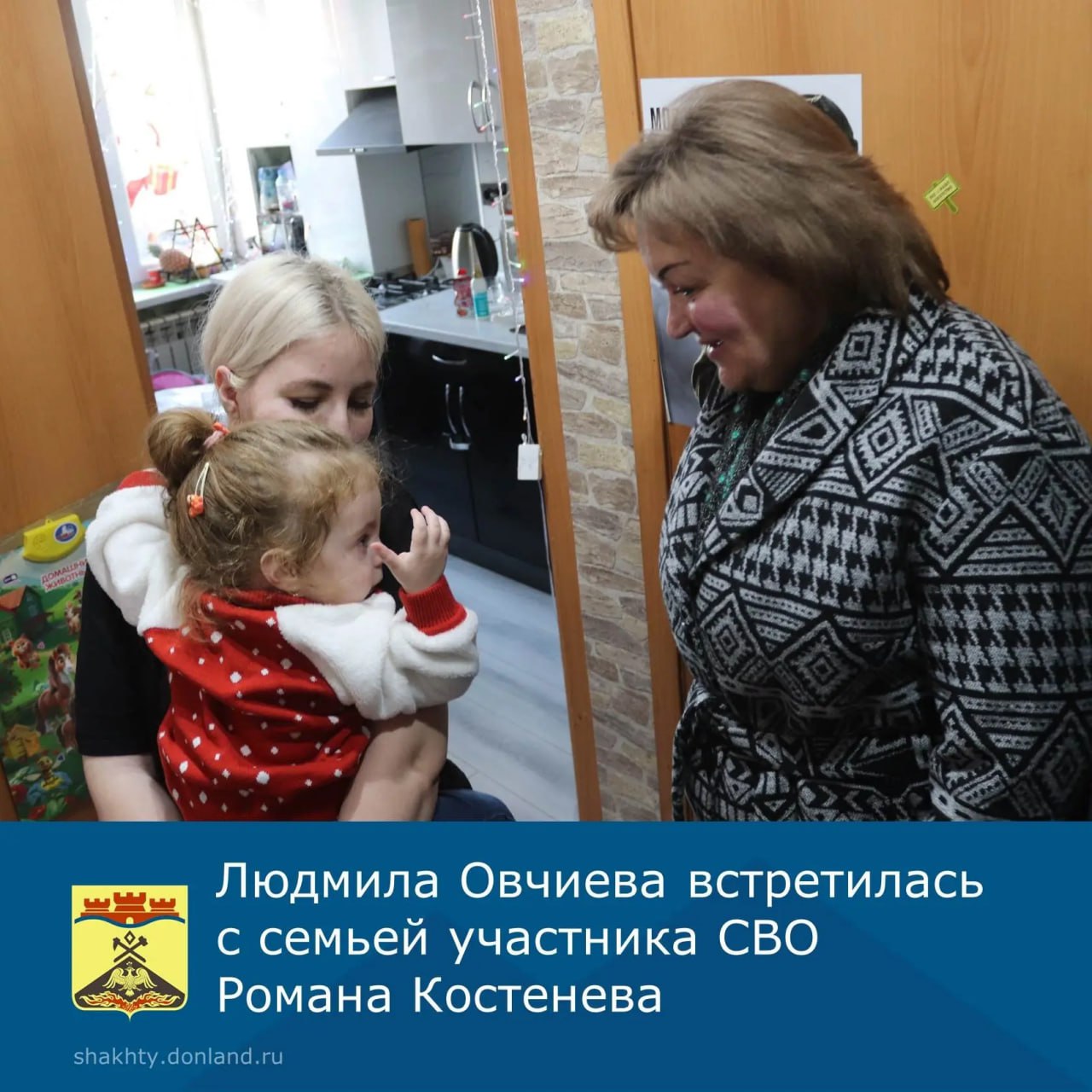 Глава города Шахты Людмила Овчиева вместе с председателем городской Думы Максимом Голодовым и депутатом Юрием Назаряном посетили семью погибшего участника СВО Романа Костенева.