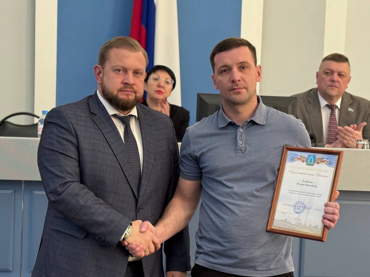 На заседании Батайской городской Думы отдельно поблагодарили людей, которые в ночь ЧС первыми пришли на помощь пострадавшим. Вручил им благодарственные письма от имени города.