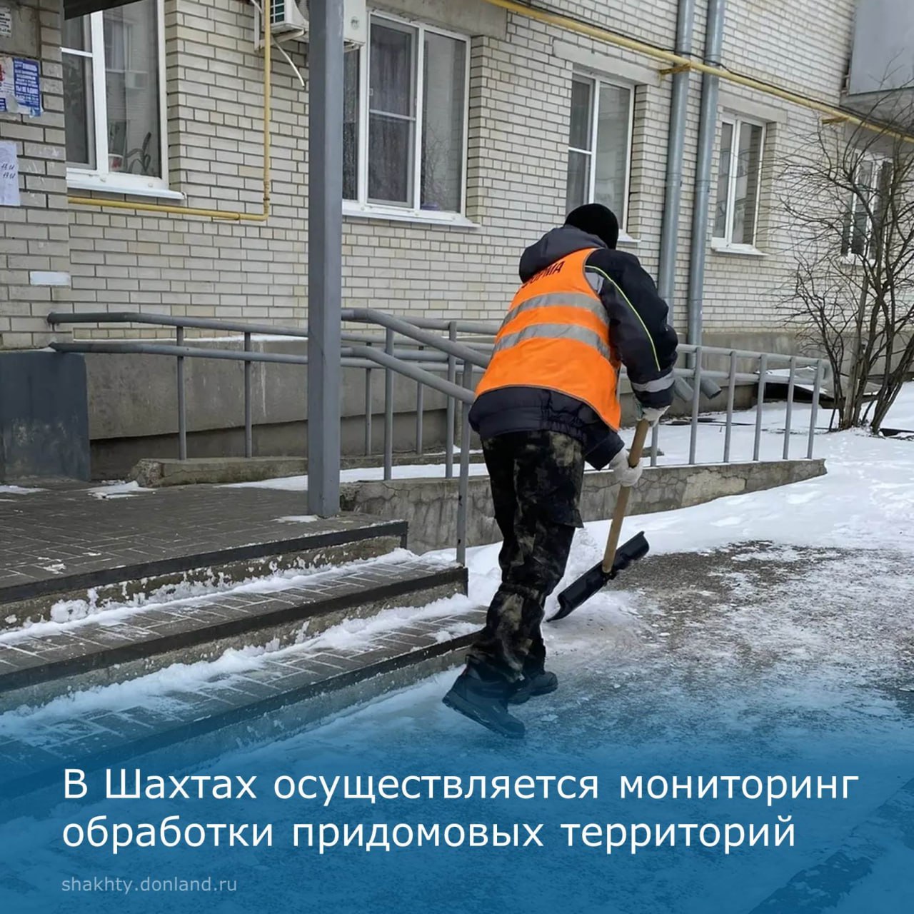 В городе Шахты инспекционный отдел проводит мониторинг обработки придомовых территорий противогололедными средствами.