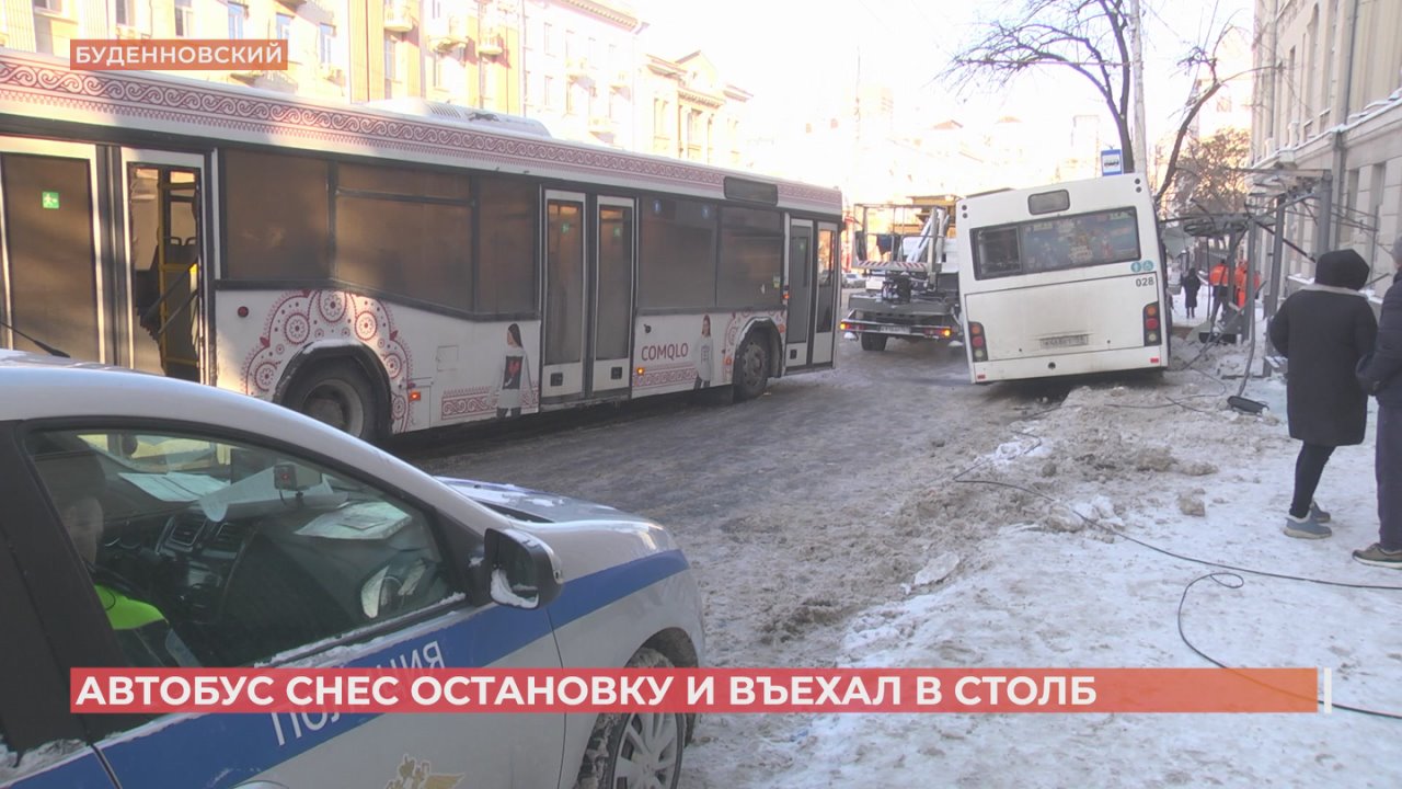 Пассажирский автобус №27 снес остановку возле Дома офицеров на Буденновском в 08:40: тяжелую машину остановил столб. По предварительным данным, ни водитель, ни пассажиры в салоне, ни прохожие не пострадали. В ГАИ пояснили: 70-летний водитель трогался с ручника - и его автобус столкнулся с другим - 83-го маршрута. После чего отлетел в столб. В 27-ом разбиты окна и лобовое стекло, зеркала. Довольно сильно пострадала передняя часть. Столб ЛЭП попробуют восстановить; если не получится, придется менять.