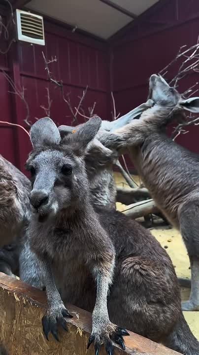 Доброе утро, друзья! Несмотря на прогнозируемый сильный ветер, дождь и мокрый снег, давайте последуем совету кенгуру из парка птиц «Малинки» — просто улыбаться. Правда, у них самих это пока не очень получается: с утра пораньше уже задирают друг друга