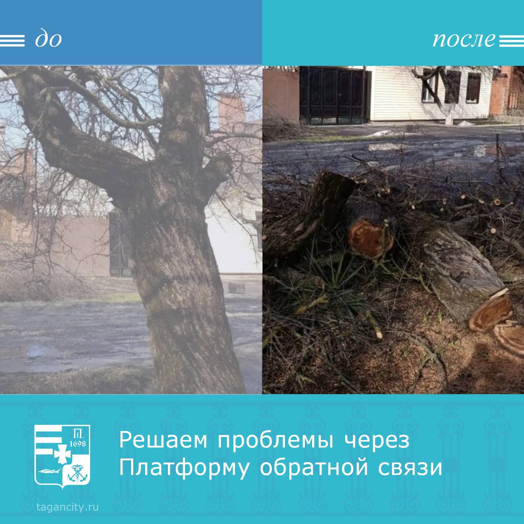 Таганрожцы сообщили через Платформу обратной связи «Госуслуги. Решаем вместе» о проблеме: рядом с домом 204 на улице Панфилова произрастало аварийное дерево.