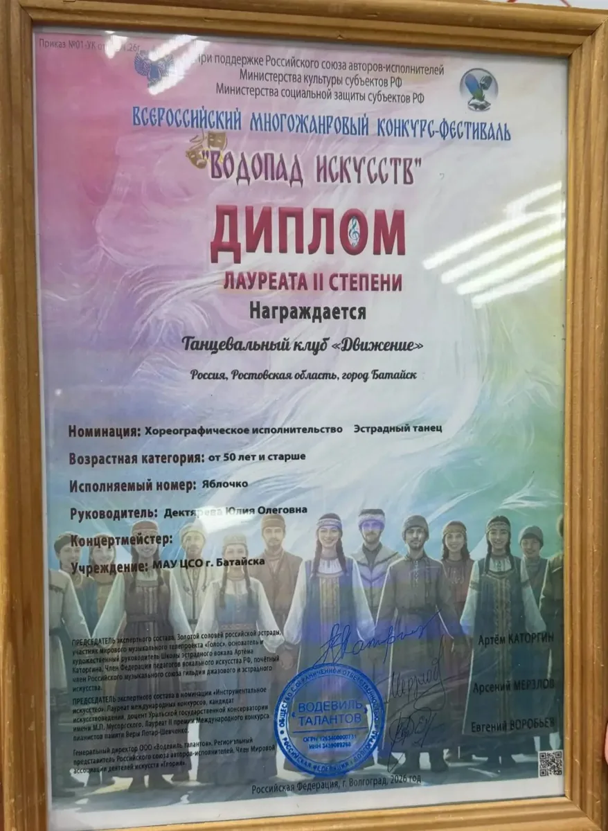 Танцевальный клуб «Движение» Центра социального обслуживания Батайска принял участие во Всероссийском конкурсе «Водопад искусств» и по итогам выступления стал лауреатом II степени.