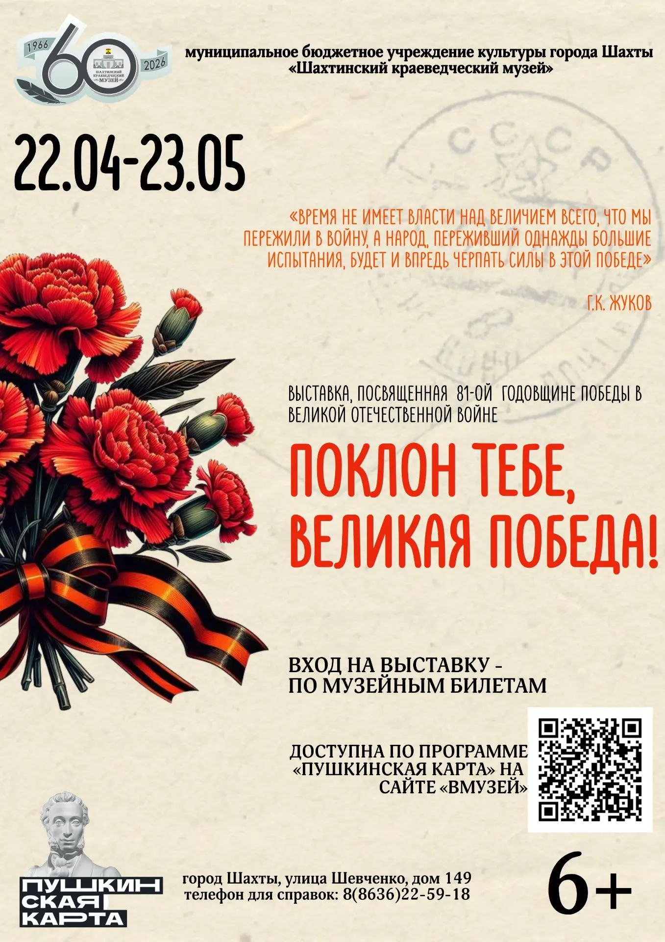 Доступно по «Пушкинской карте» — покупайте билеты на сайте оператора «ВМУЗЕЙ»: https://vmuzey.com/event/vystavka-poklon-tebe-velikaya-pobeda-3