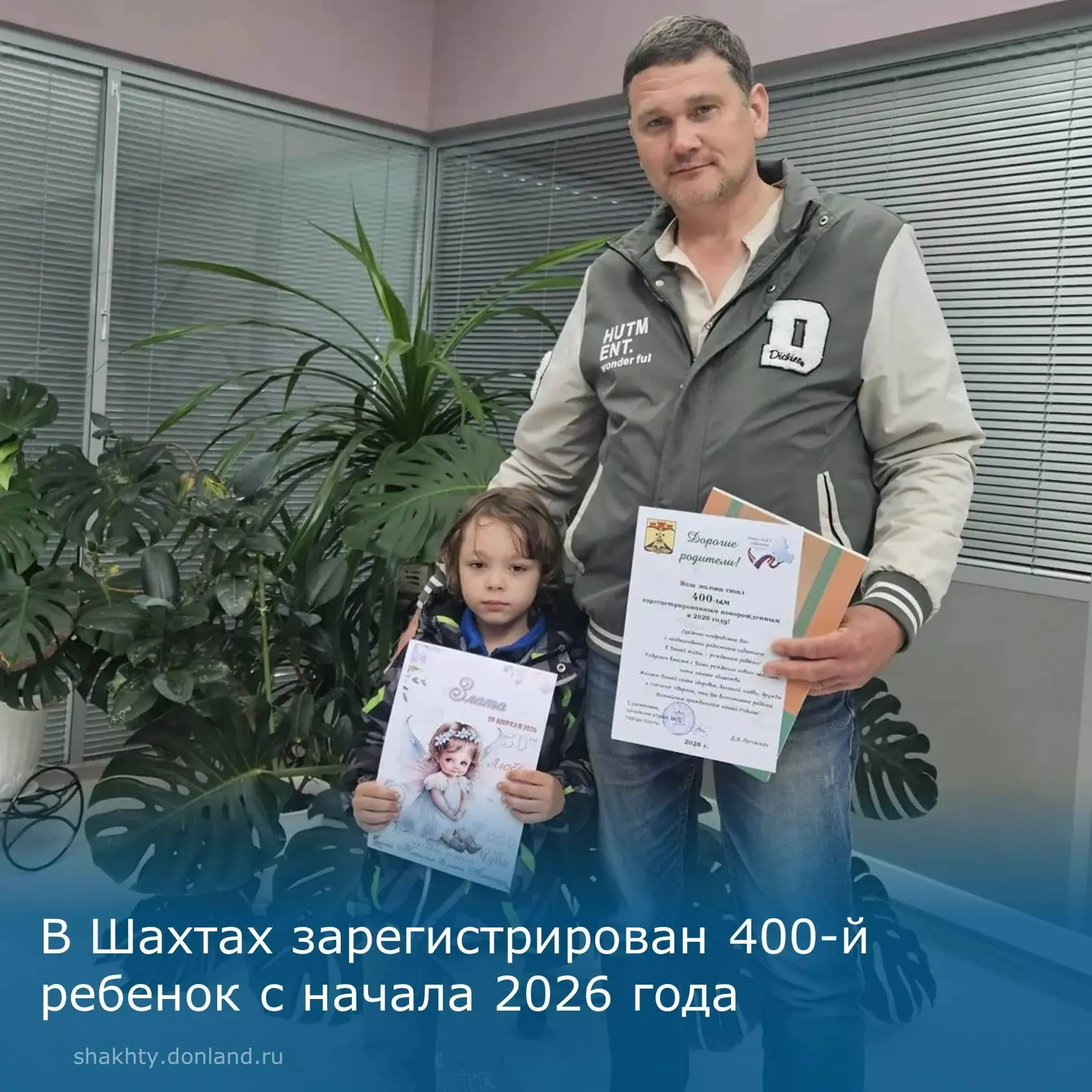 В отделе ЗАГС города Шахты зарегистрирован 400 ребенок с начала 2026 года