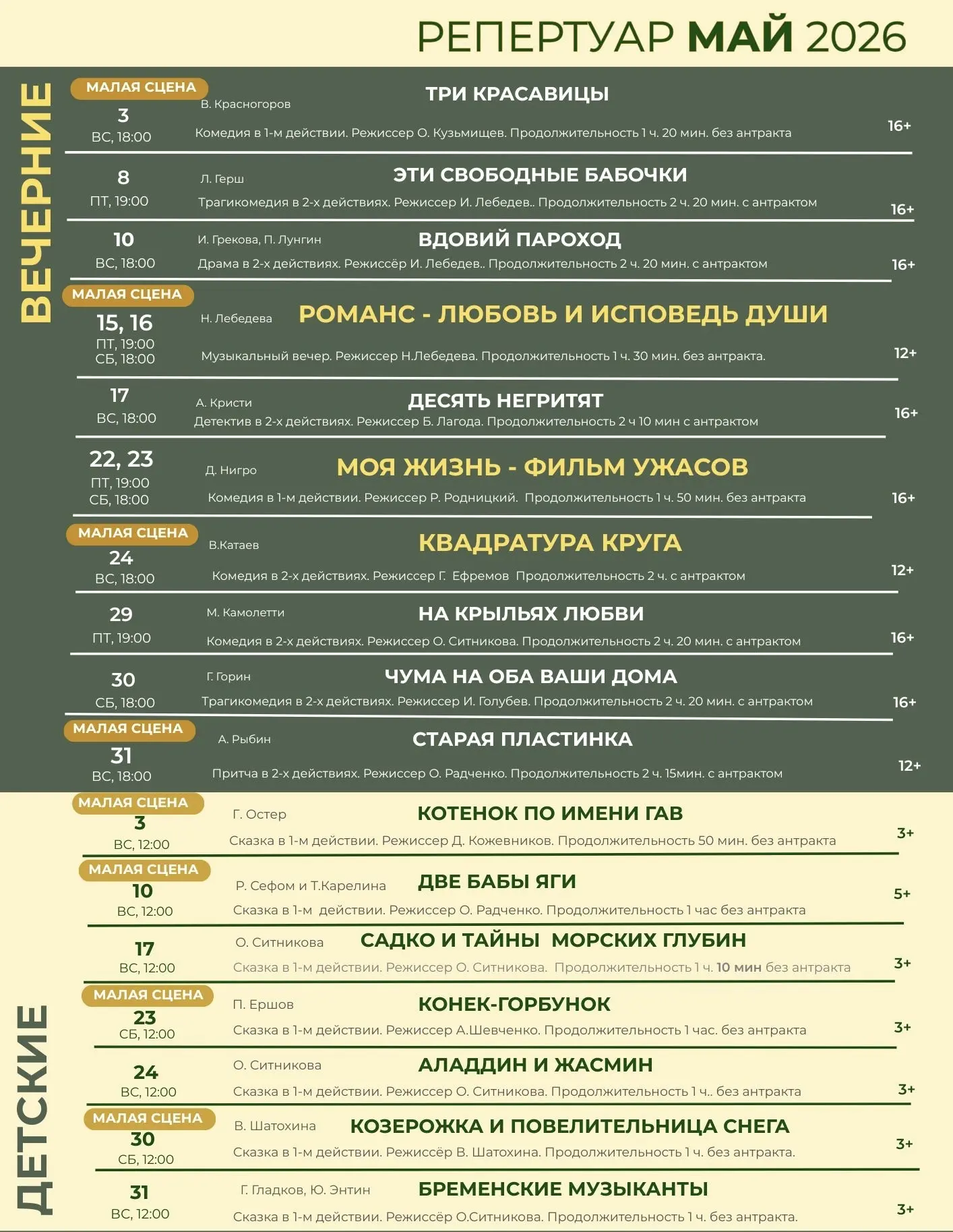 Уважаемые новочеркасцы! Знакомим вас с афишей Донского театра драмы и комедии имени В.Ф. Комиссаржевской на май.