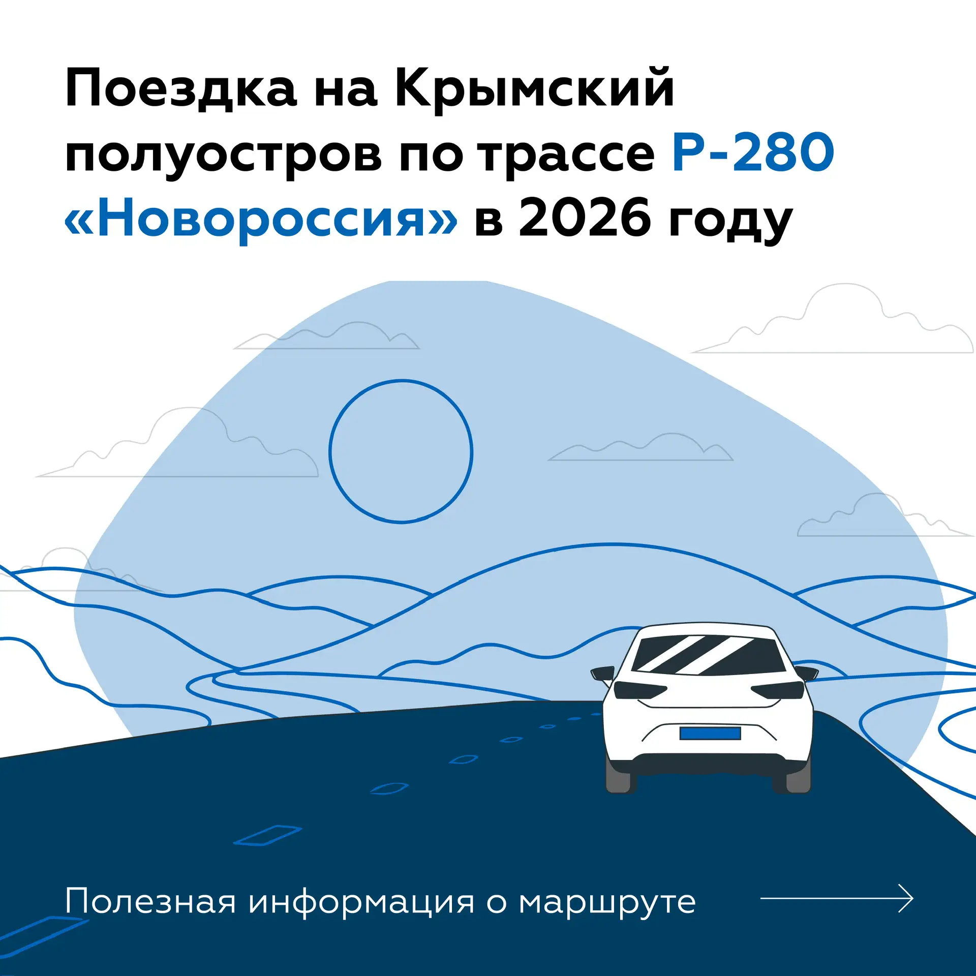 В 2026 году на полуостров Крым и обратно возможно проехать не только через Крымский мост, но и по федеральной трассе Р-280 «Новороссия».
