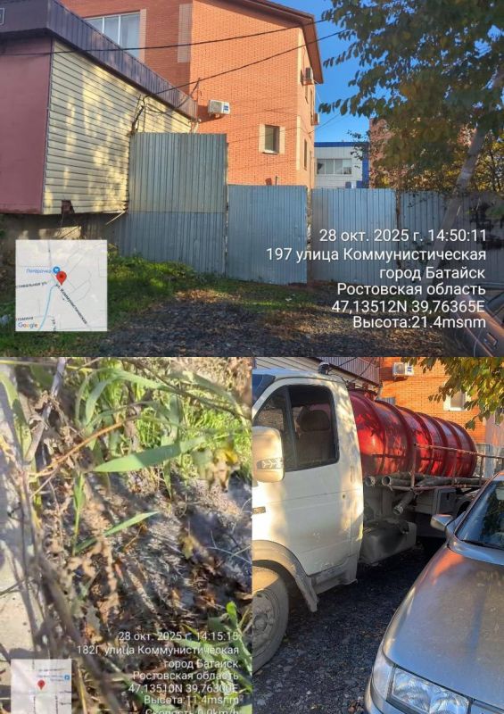 В Батайске через «Платформу обратной связи» поступило сообщение о несанкционированном сбросе сточных вод в р. Быстрый.Муниципальная инспекция оперативно выехала на место и подтвердила факт выбросов. Причина — переполненная выгребная яма.На...