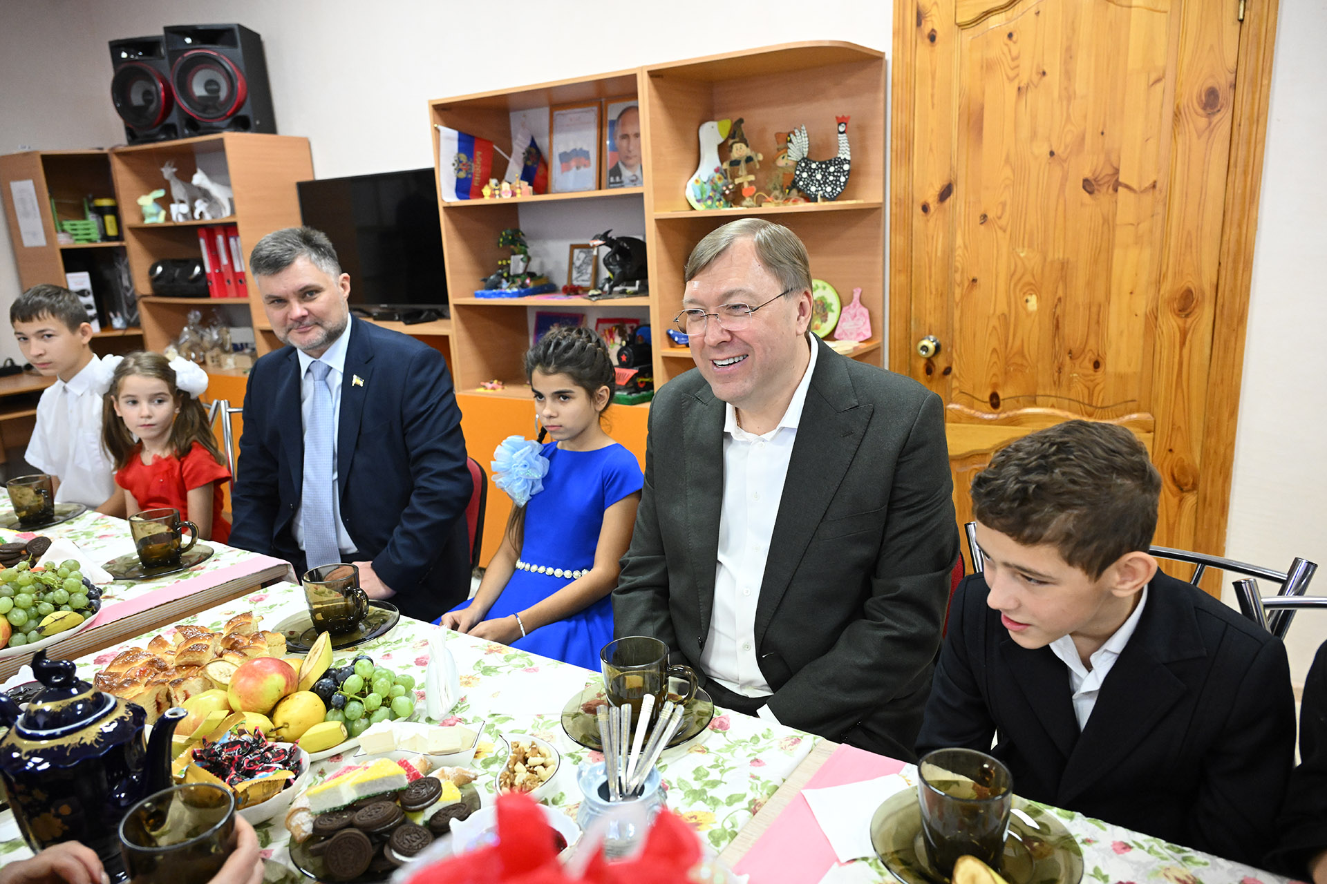 Спикер донского парламента привез воспитанникам центра памятные подарки. В беседе за чашкой чая ребята рассказали Председателю Законодательного Собрания о своей жизни, интересах и планах на будущее.