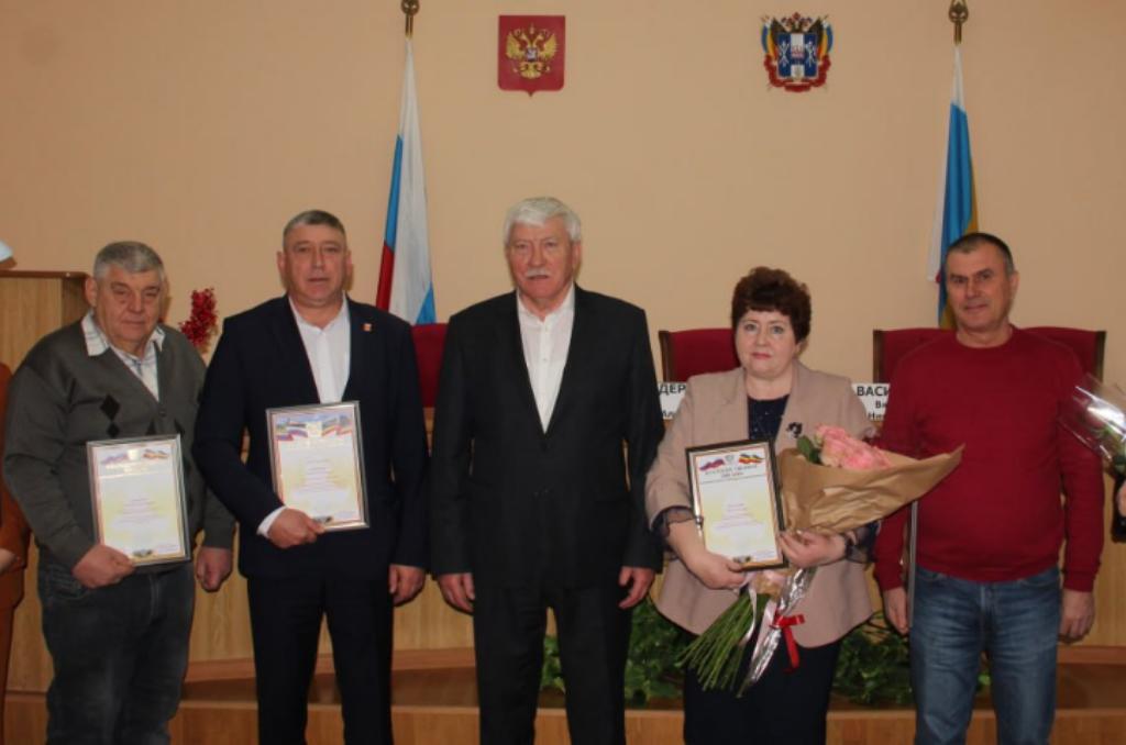 От имени Председателя Законодательного Собрания Ростовской области Александра ИЩЕНКО Вячеслав ВАСИЛЕНКО вручил поощрения донского парламента заслуженным работникам района.