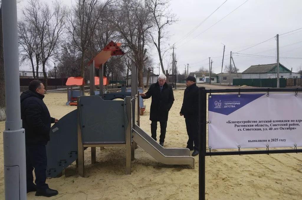 Заместитель Председателя Законодательного Собрания Ростовской области – председатель комитета по аграрной политике Вячеслав ВАСИЛЕНКО осмотрел обновленную детскую площадки в станице Советской. Благоустройство объекта происходило в рамках губернаторского проекта «Территория детства», реализуемого по инициативе Губернатора Ростовской области Юрия Слюсаря.