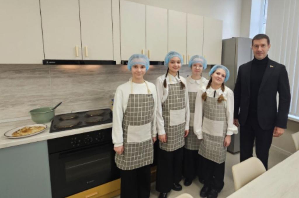 В ходе визита Сергей ЗАРЕВСКИЙ увидел, как новое оборудование применяется в учебном процессе – в день начала широкой масленицы школьницы, приготовили блины и организовали традиционное масленичное чаепитие.
