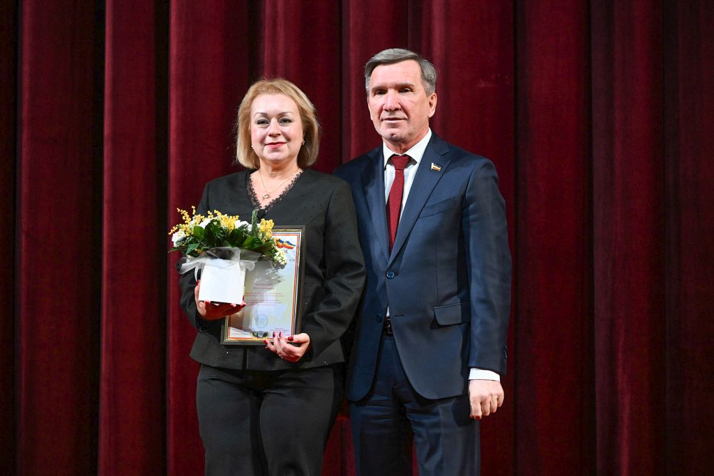 Игорь ГУСЬКОВ от имени депутатов донского парламента пожелал педагогам здоровья, мира, добра, благополучия и вручил отличившимся работницам сферы образования поощрения Законодательного Собрания.