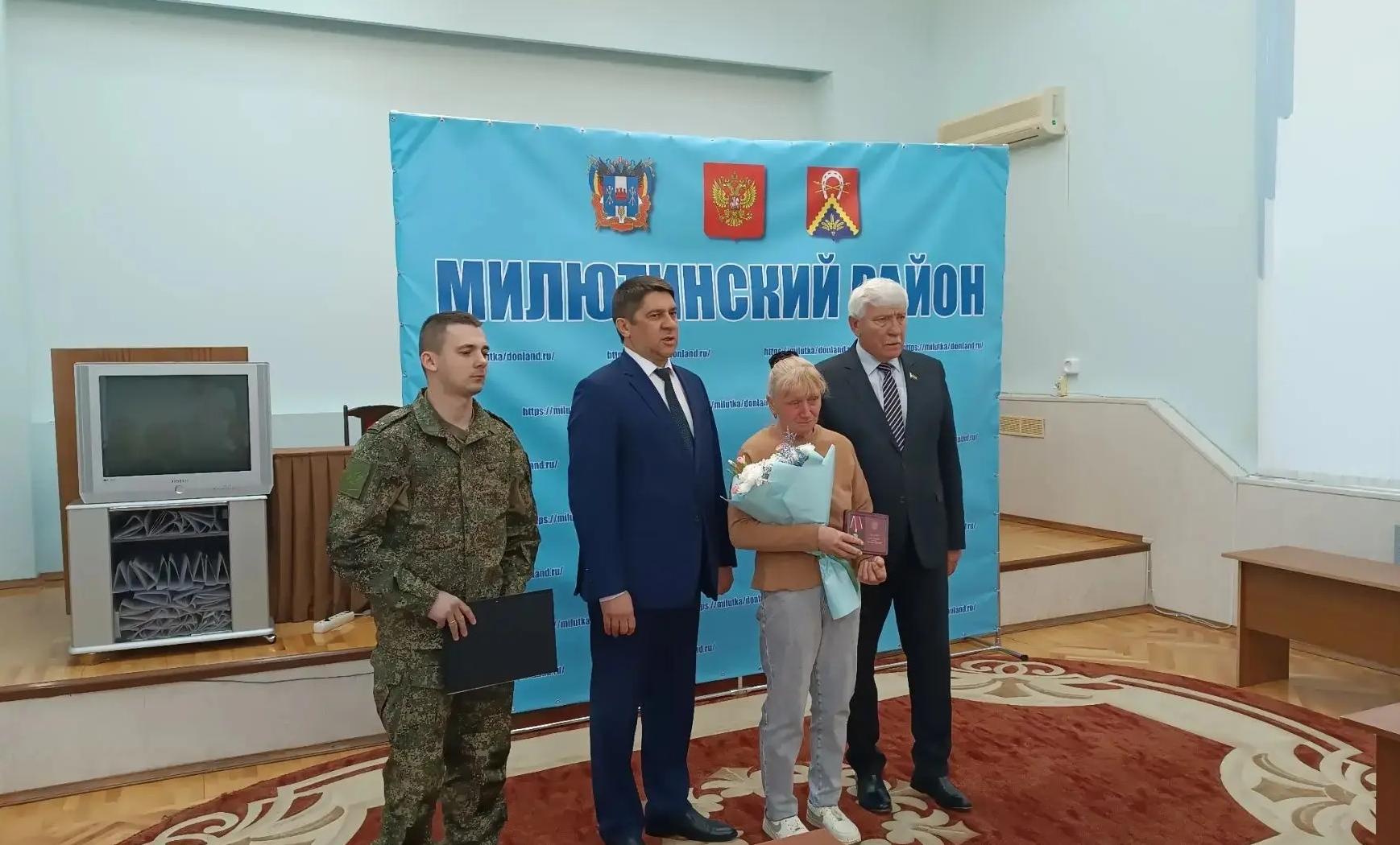 Заместитель Председателя Законодательного Собрания Ростовской области - председатель комитета по аграрной политике Вячеслав ВАСИЛЕНКО в станице Милютинской вручил Орден мужества семье погибшего участника специальной военной операции Александра Ежикова.