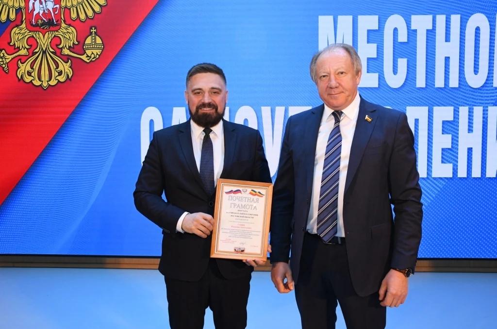 Андрей КУРНОСОВ вручил муниципальным работникам района и города почетные грамоты. Награды получили глава администрации Каменского района Владимир Савин и глава Каменска-Шахтинского Александр Камоцкий.