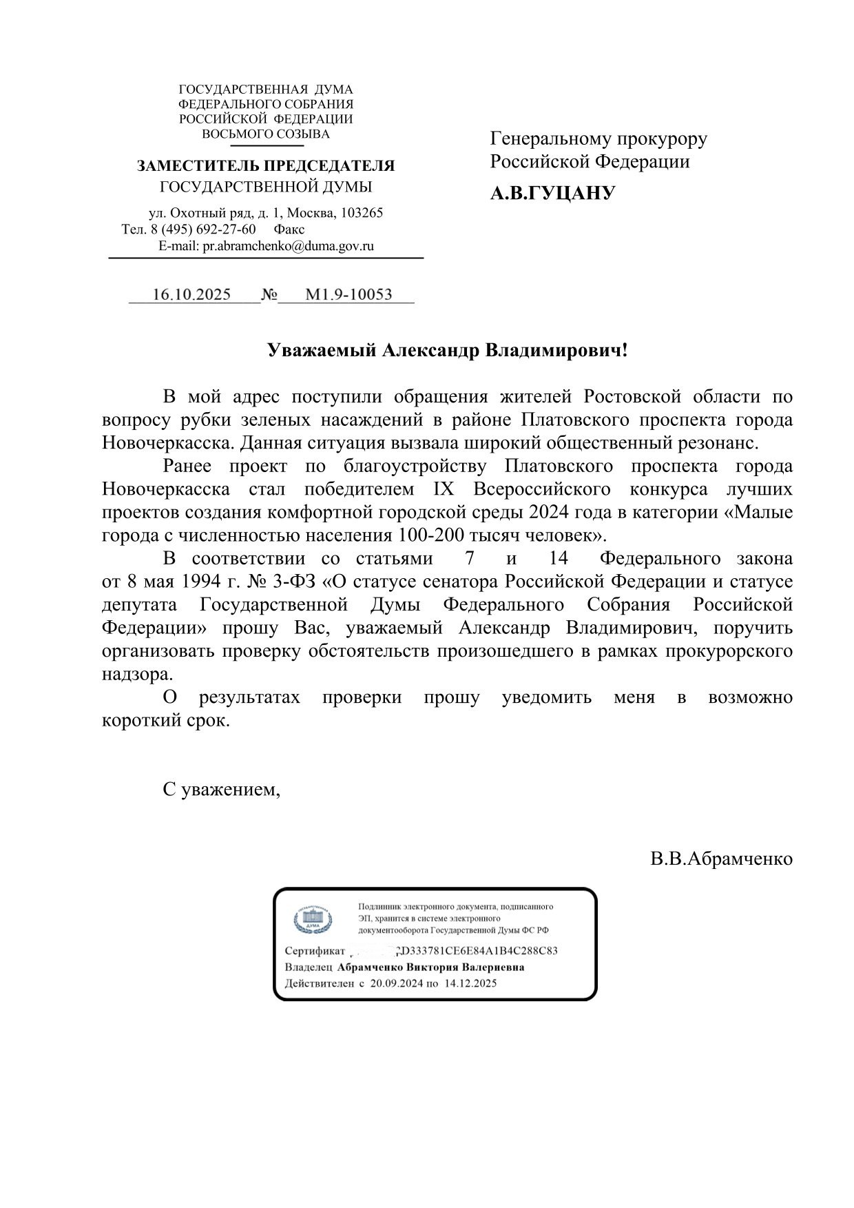 Заместитель председателя Госдумы Виктория Абрамченко обратилась в прокуратуру на предмет проведения соответствующей проверки случившегося. Комментируя скандальную вырубку сосен, В.Абрамченко, избранная в Госдуму...