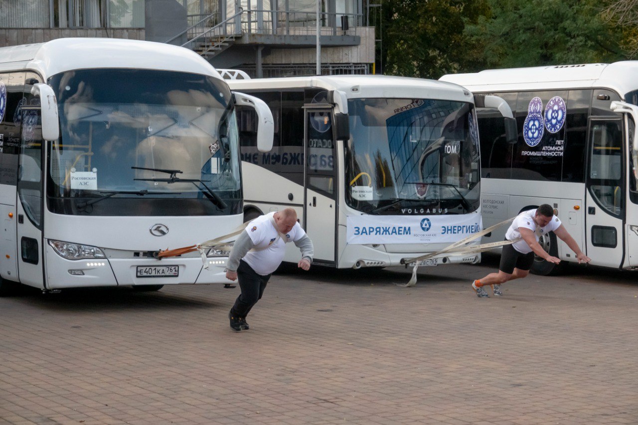 Донские богатыри отбуксировали пять автобусов за 48 секунд, установив новый рекорд России
