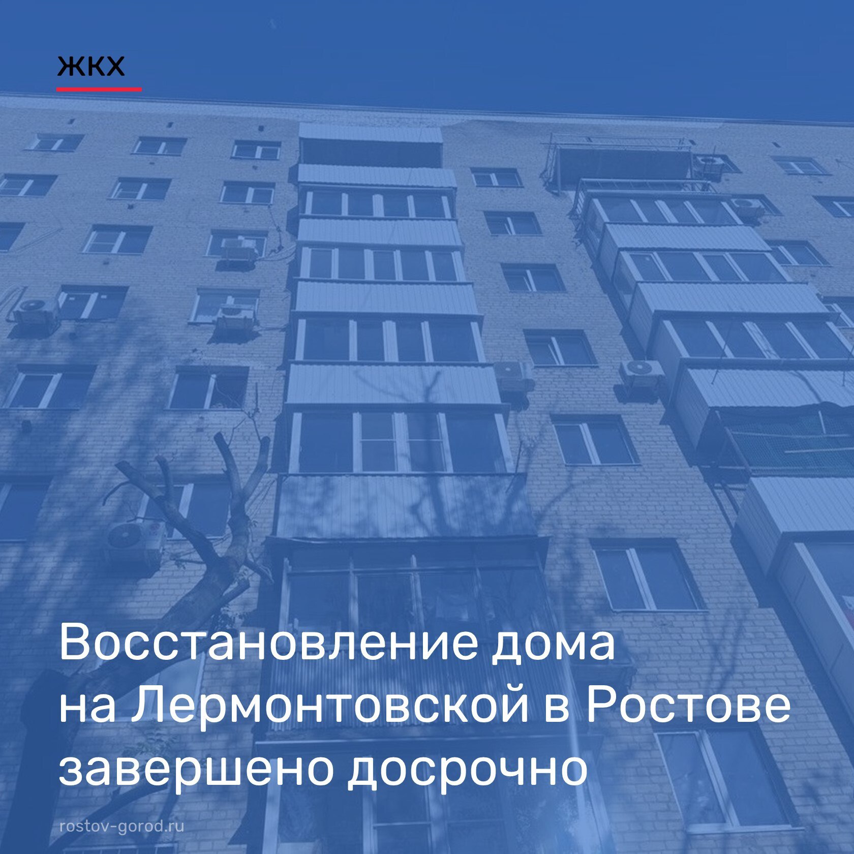 В Ростове завершены восстановительные работы в многоквартирном доме по улице Лермонтовской, пострадавшем 14 августа.
