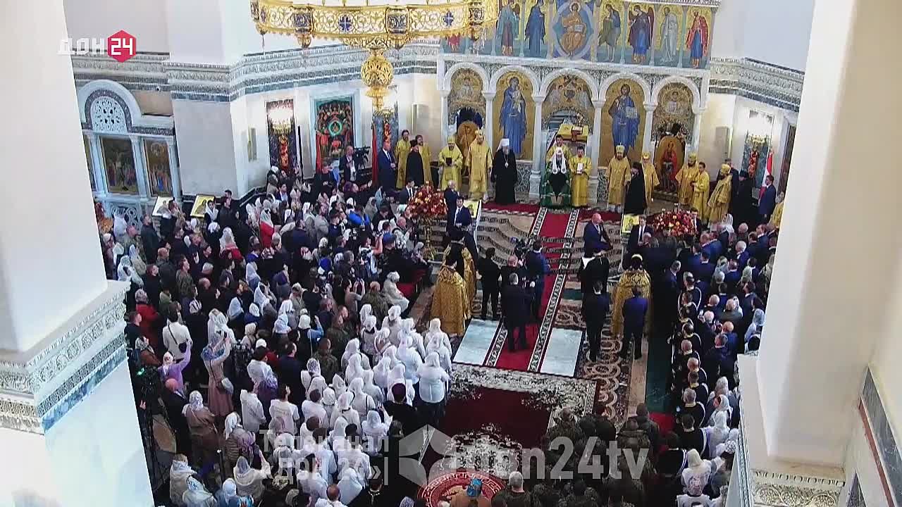 Патриарх Кирилл также вручил главному храму Южного военного округа икону Спаса Нерукотворного.