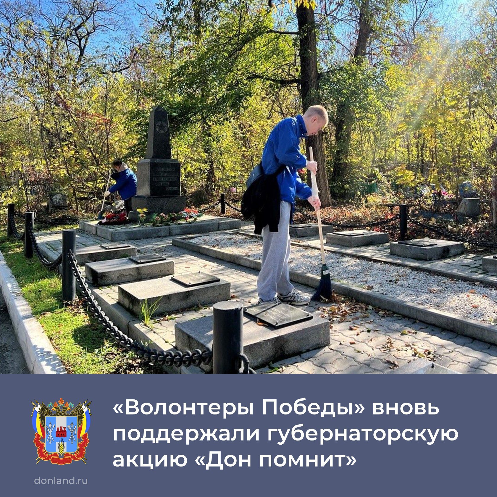 В рамках общеобластного субботника активисты движения «Волонтеры Победы» поддержали губернаторскую акцию «Дон помнит» и провели уборку у памятников воинам на братском кладбище Ростова.
