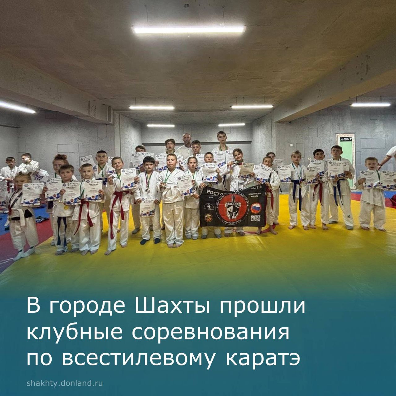 В городе Шахты при поддержке Ростовского филиала Российского Союза Боевых Искусств прошли клубные соревнования по всестилевому каратэ в разделах «Ограниченный контакт» и «Поединки в средствах защиты» и борьбе «Самбо» среди воспитанников Добровольного спортивного общества «Георгий Победоносец».