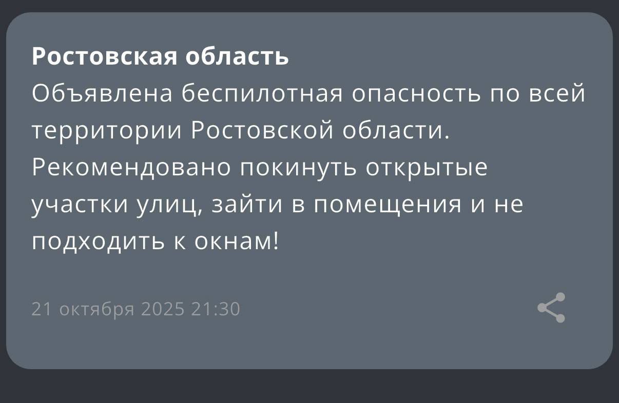Вооруженные силы Украины (ВСУ) атаковали город Батайск Ростовской области дронами FP-1. Это утверждает Telegram-канал Shot.В ночь на 21 октября над регионом было сбито свыше 30 беспилотников.На Украине БПЛА FP-1 позиционируют как «стратегический...